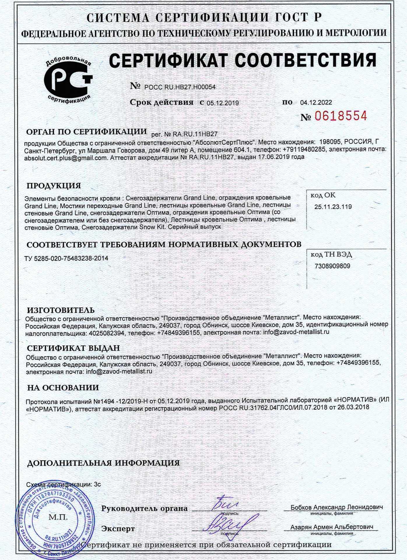 Подтвержденное сертификатами и действующими ГОСТ